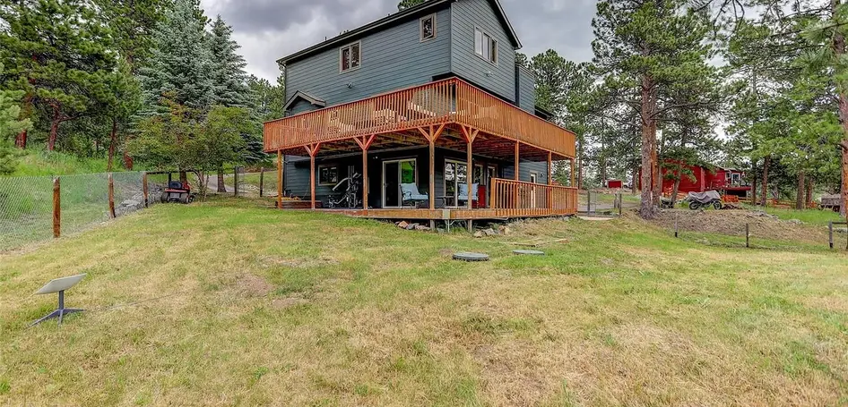 Last Chance, removing from market Oct. 7, 2025. Mountain Living Meets Modern Upgrades... Move-In Ready in Evergreen! This beautifully updated Evergreen retreat combines comfort, charm and thoughtful upgrades throughout. Step inside to a refreshed interior with an updated kitchen, new flooring and renovated bathrooms. A brand new water heater ensures year-round comfort and efficiency, while BRAND NEW James Hardie cement siding offers durability and protection against woodpeckers and nuthatches. The walk-out basement is an entertainer’s dream with a dedicated theater space, pool table and kitchenette, all opening to a spacious deck overlooking a fenced backyard where elk and deer wander by. Additional highlights include a circular driveway with extra parking, RV parking with electric hookups, a school bus stop at the top of the driveway, BRAND NEW fire-resistant siding and BRAND NEW Class 4 Roof for easier homeowner’s insurance, and optional furnishings for the theater and game rooms.This well-maintained property blends safety, style and function in a picturesque mountain setting. Whether you are searching for a full-time residence or a weekend escape, this home delivers space, privacy and versatility just minutes from the heart of Evergreen.